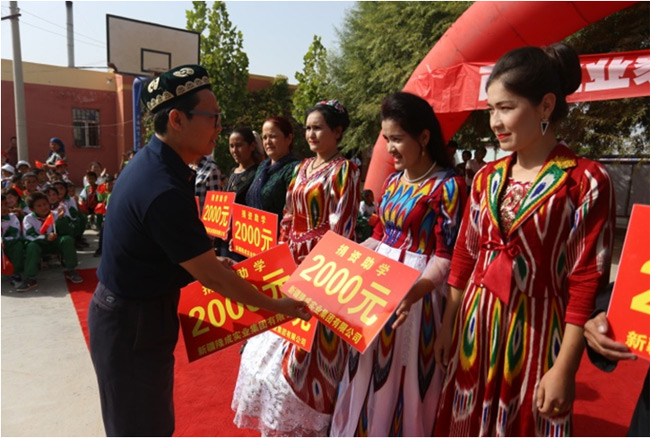 前往南疆庫(kù)木薩克村,走訪貧困戶,為貧困學(xué)子、貧困家庭捐贈(zèng)愛(ài)心基金10萬(wàn)元